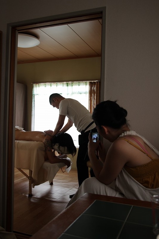 ロミロミワークショップで一緒だった仲間たちに来てもらい、エサレンマッサージの練習をしました。